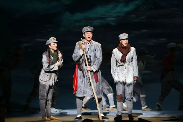 我与王喆、王凯共同在晚会中演唱《过雪山草地》。为了真实还原红军长征过雪山草地时的情景,我们被化上了特殊的冻伤妆,服装也异常破旧。化上这样的妆容、穿上这样的服装,能感受到红军当年的艰辛。