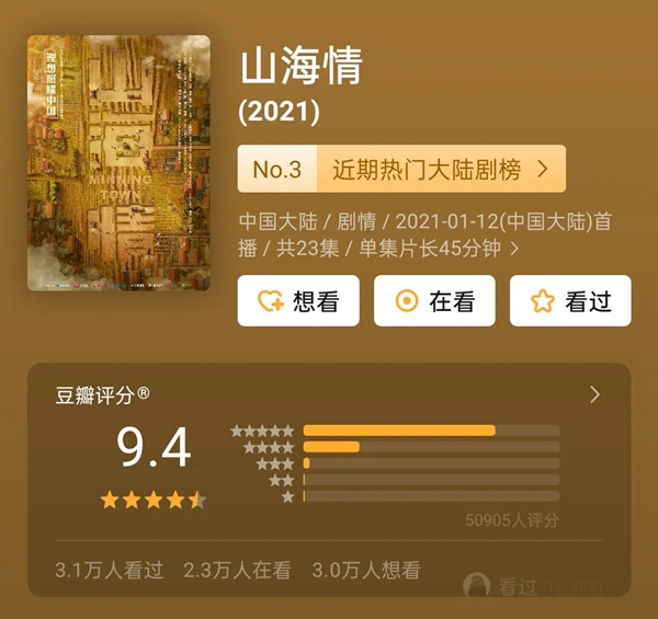 1月12日,接棒《大江大河2》,《山海情》在各大卫视上映了。