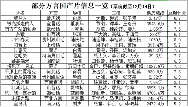 越来越多电影使用方言增加人物的真实感和立体感。据统计,2019年说方言的电影便有十多部。