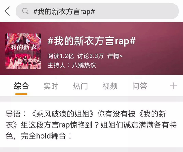 综艺《炙热的我们》中男团组合以一首重庆rap《中国话》燃爆全场,综艺《乘风破浪的姐姐》用方言演唱《我的新衣》也登上了微博热搜榜,还有阿云嘎在综艺舞台上的蒙古语rap更是给人新鲜感。
