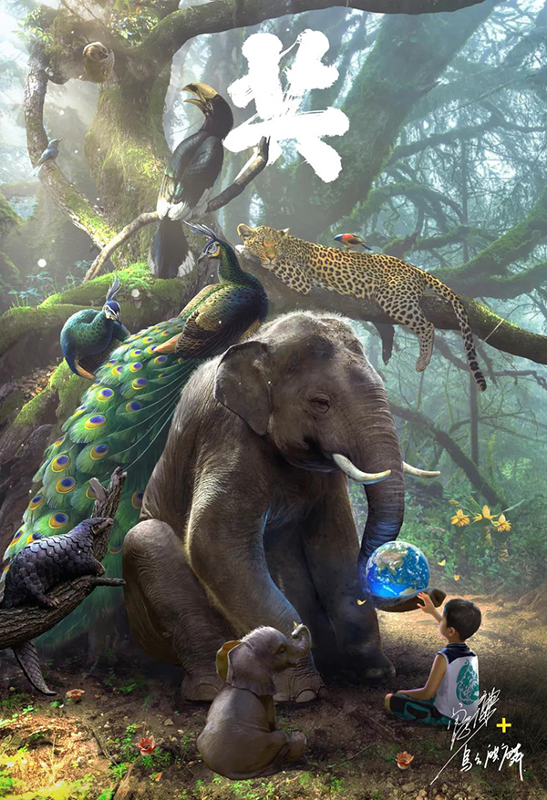 乌合麒麟团队的两件作品——《岛》《共》以“人与自然生命共同体”理论为创作指引,与植物科学画名家曾孝濂合作创作。曾孝濂躬耕植物科学画领域数十年,运用雕版、水彩、水粉、油画、国画相结合的综合画法,提供了部分动植物绘画作品。乌合麒麟团队再以计算机绘图技术(CG技术)结合其传统手绘方式共同创作,加上动态制作技术,让二维画面立体、生动起来。