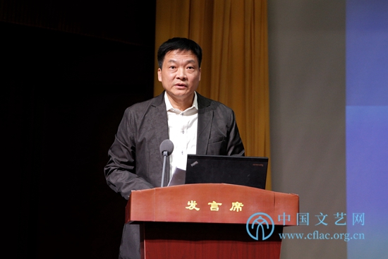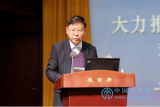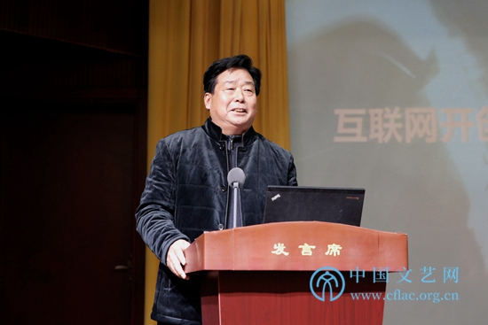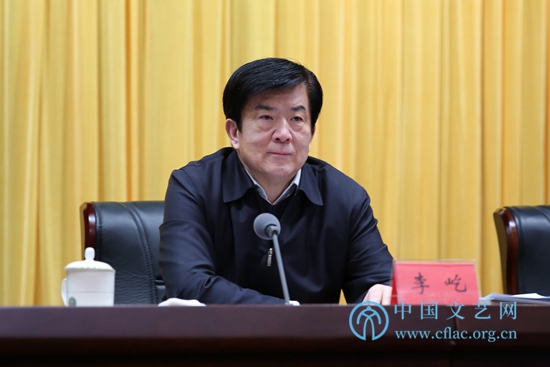 11月28日,由中国文联主办的全国文联“互联网+文艺”工作会议在京召开。图为中国文联党组书记、副主席李屹在会上讲话。 中国文艺网 高晴摄