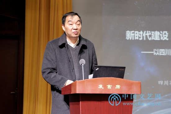 11月28日,中国文联举办的全国文联“互联网+文艺”工作会议上,与会代表交流研讨了“互联网+”相关工作经验。图为四川省文联党组副书记刘建刚在大力推动“互联网+文艺”和网络文艺发展专题研讨会上发言。 中国文艺网 高晴摄