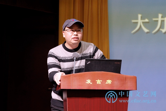11月28日,中国文联举办的全国文联“互联网+文艺”工作会议上,与会代表交流研讨了“互联网+”相关工作经验。图为中国文艺评论家协会网络文艺委员会秘书长庄庸在大力推动“互联网+文艺”和网络文艺发展专题研讨会上发言。 中国文艺网 高晴摄