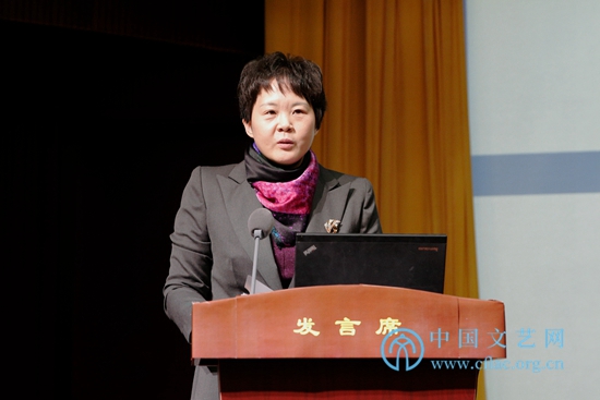 11月28日,中国文联举办的全国文联“互联网+文艺”工作会议上,与会代表交流研讨了“互联网+”相关工作经验。图为上海市文联党组成员、专职副主席韩陈青在大力推动“互联网+文艺”和网络文艺发展专题研讨会上发言。 中国文艺网 高晴摄