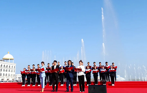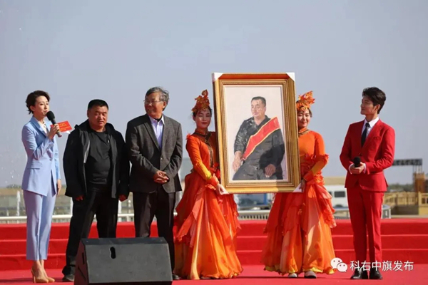 “今天,我们用朝霞擦亮了时代的窗口,看五角枫的红叶挂满天空和美丽的山岗。今天,牧民们骑上奔驰的枣红马,为千年追梦插上高飞的翅膀……”伴随着脱贫攻坚题材电视剧《枫叶红了》主演巴音额日图、孟浩强等人朗诵的专门为本次活动创作的诗歌《今天,枫叶红了》,现场观众不禁望向科右中旗赛马场的蓝天。
