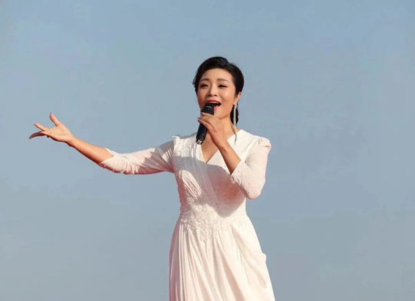 “我们的中国梦”——文化进万家中宣部、中国文联文艺志愿服务队走进内蒙古科右中旗主场慰问演出现场。图为吕薇演唱歌曲《多情的秋》(图片来源:科右中旗发布)