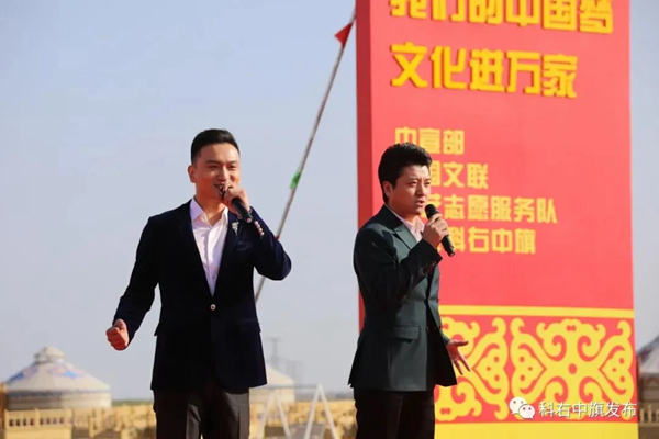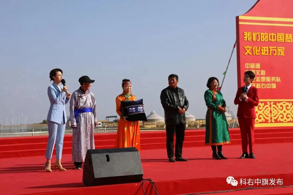 正值国庆前夕,中宣部、中国文联文艺志愿服务队走进科右中旗,由国家级艺术家、自治区、盟、旗乌兰牧骑队员、艺术家、文艺爱好者共同参与,深度挖掘科右中旗的新时代故事,助力科右中旗的群众文化生活水平不断提升,展现了新时代科右中旗在小康路上昂首奋进的风采和科右中旗人民奋发向上的精神风貌,从而受到当地老百姓的热烈欢迎。