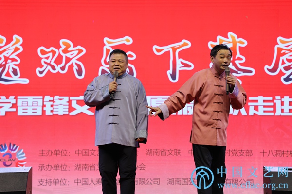 11月4日,中国文联学雷锋文艺志愿服务队“送欢乐下基层”慰问演出走进湘西花垣县活动在花垣县融媒体中心举行。图为大兵、赵卫国表演相声《阴错阳差》。中国文艺网 张钰童 摄