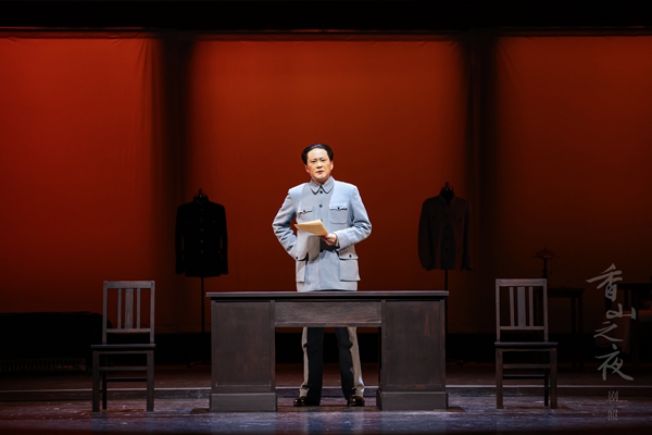 该剧从解放军占领南京前夜切入,以毛泽东在北京香山双清别墅的内心世界为主线,将不同时空的人物放在同一戏剧场景里,创造隔空对话的艺术想象。