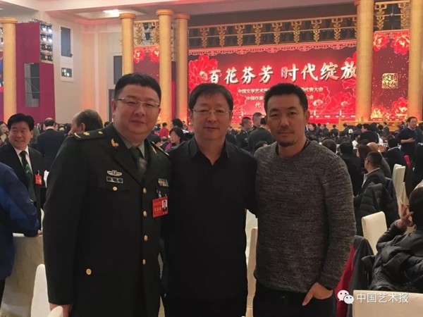 2016年12月,何沐阳(右)参加中国文联第十次全国代表大会