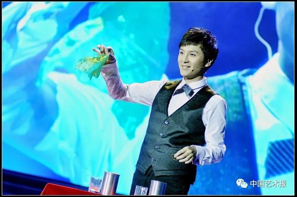 ●中国艺术报:傅氏幻术传承百年,2014年被列入国家级非物质文化遗产名录,作为傅氏幻术第四代传承人,您觉得傅氏幻术有哪些特色? ◎傅琰东:傅氏幻术传承四代已经有100多年的历史了,其特色主要是知识分子变魔术,就是每一代魔术师都需要有高学历,要有大学及以上的文化程度,因为这样能够更好地理解和创作魔术,这是第一。第二是坚持原创,因为我们每一代魔术师秉持的都不是传统意义上“一招鲜,吃遍天”的思路,都是走的高产之路。从我爷爷的爸爸开始,他就已经留下很多非常好的魔术,我爷爷一直到去世的前几天,还一直在画图,一直在坚持创作,我爸爸创作的作品就更多了,直到现在我也是在做这一行,可能身体里流动着就是这样一种血脉,所以停不下来。我特别喜欢跑步,每天跑十公里,是什么支撑我能够跑下来?就是创作,因为跑步的时候是我的思路最清晰的时候,想一些问题最容易想通,我的好多节目都是在跑步中想出来的。我觉得这是傅氏幻术的两个特点。 ●中国艺术报:傅氏幻术每一代魔术师都要有高学历,您毕业于上海华东师范大学金融系,为什么选择金融系,毕业之后又回到魔术行业,走上职业魔术师之路? ◎傅琰东:当时我不想考大学,想直接跟着我爸爸做魔术,但是我妈就觉得很可惜,因为我是在市重点中学就读,学习成绩也不错。她觉得做魔术风雨飘摇,那时候我爸爸一年可能有十个月都在外地演出,我妈不想让我过这样的日子,就说你还是学一门手艺,将来也有安身立命之道。当时金融还是很难考、很热门的,我说我学国际金融,但是毕业以后我不会做金融,我要回到我爸爸身边。后来我们商定了,大家都同意了,这样我才去考了国际金融。 ●中国艺术报:在您大学毕业时,恰好以您父亲之名命名并由您父亲一手打造的上海欧罗巴乐园腾龙魔术城堡建造并营业,三四年时间里您参与并见证了全过程,也磨练成了能独当一面并懂得管理运营的全能型魔术师,这段经历对您影响深远。 ◎傅琰东:对,我刚毕业的时候是在我爸爸的剧团打杂,最苦的活儿我爸爸都让我做,这样也挺好,也让我了解了方方面面,毕竟自己原来是一个书生,没有更多的实战经验。那时候我被派到城堡,作为我们这边的代表,每天住在那里,帮着培训一些新招进来的孩子一起编排节目。我觉得自己真正地像一个总管一样,什么都要管,积累了好多工作经验,自己也当了主要演员,也当了主持人。那是个乐园,是要循环演出的,我们每场演出大概45分钟,每天演好多场,三年下来演了将近三四千场,这样我也就把一些舞台上的恐惧感等都克服了。毕竟原来是学生,要走到一个专业演员的层次,距离还是蛮大的,慢慢地过了这三年,我觉得我突然就长大了。 ●中国艺术报:身为“魔王”傅腾龙之子,曾有人认为您出身于世家一切皆可来得容易,是“一朵被包裹在长辈羽翼下的温室花朵”,您以自己多年来的坚持与成就证明了自身实力,其中也多有坎坷,比如进军歌唱界,和魔术师汪燕飞组成“红桃A”组合,探索将魔术和音乐结合;比如成为央视的常客,参加“魔术训练营”“异想天开”“魔幻足球”等节目,提高了知名度。逐梦路上还有哪些难忘的经历?
