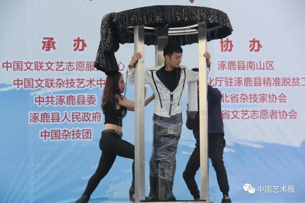 我总结了一下,要做一名成功的魔术师,需要四大元素,就是“财侣法地”。财,你得有资金;侣,要有一帮合作伙伴,可能是搭档,也可能是助理等;法,你要有研发方法;地,要有一块排练或者堆道具的地方。 ●中国艺术报:据了解,为复兴已经失传或即将失传的古老幻术,大概从2011年开始,您就“隐居”在门头沟租借的农舍里,试验古籍记载或者老艺人口中传言的古代幻术,比如鱼跳龙门、种瓜、崂山道士穿墙术等等,现在搬到了房山这里继续魔术研发和创作、排练。为什么会选择这样的地方? ◎傅琰东:因为我总结了一下,要做一名成功的魔术师,需要四大元素,就是“财侣法地”。财,你得有资金;侣,要有一帮合作伙伴,可能是搭档,也可能是助理等;法,你要有研发方法;地,要有一块排练或者堆道具的地方。所以“财侣法地”很重要。魔术师这个行业很艰辛,尤其是像现在我自己也收了徒弟,有12个。我们其实还是沿袭的传统的那一套,就是一个班子的感觉,一个师傅带着一帮人。像汪燕飞,我们一起走过了多少年,从2000年开始,到现在20年了,道具师傅是1998年开始合作的,我最大的徒弟是2007年来的,都已经十几年了。 ●中国艺术报:2011年央视春晚表演魔术《年年有“鱼”》,是您第七次走上央视春晚舞台,作为单独的节目亮相还是第一次,也因此一举成名。这个节目也得益于对古籍的钻研,据说这个节目台上表演7分半钟,台下耗时180多天,制作成本超过18万,为了保密没有参加排练,春晚直播是第一次正式演出,当时压力很大,最后演出顺利,还获得“我最喜爱的春晚节目”一等奖。《年年有“鱼”》背后有哪些故事? ◎傅琰东:当时导演组就跟我聊,说节目要喜庆,要有中国寓意,说你可以变鱼。我说变鱼很简单,我们传统魔术历代都有变鱼的,就是拿鱼竿钓鱼这种,这都不难,你们需要哪一种我都可以给你们实现。他们说这种一个都不要,要就要从没见过的。后来也不知道怎么阴差阳错地就给他们写了个方案,说可以驯鱼。在中国古代的文献上就有驯鱼,宋代就有驯鱼这么一说,但用什么方法、在什么环境下也说不好。我和我爸爸两个人用了好多种方案都不行,光鱼缸就买了多少,大大小小的鱼缸,然后确定用什么鱼,什么鱼好像都不行,鲫鱼、鲤鱼什么的都不行,最后选中的是咱们中国自己独有的龙鲫,一种眼睛大一点儿、尾巴长一点儿的小金鱼。中间的艰辛我就不多谈了,就是经常被毙掉,在关键时刻自己万念俱灰的情况下有人给你捞回来,再毙掉,整个过程有坐过山车的感觉,最后还算是成功了。 ●中国艺术报:复兴传统幻术,同时也博采众长,将世界优秀魔术精华与古老幻术融合,打造出了独一无二的“现代中国风”,尤其是大型幻术,比如《闪电换人》,将您祖辈表演过的“绑人桩”“三枷箱”等逃脱术与国外换人逃脱术创新结合并发展。您在大型幻术中西结合方面有哪些心得经验?