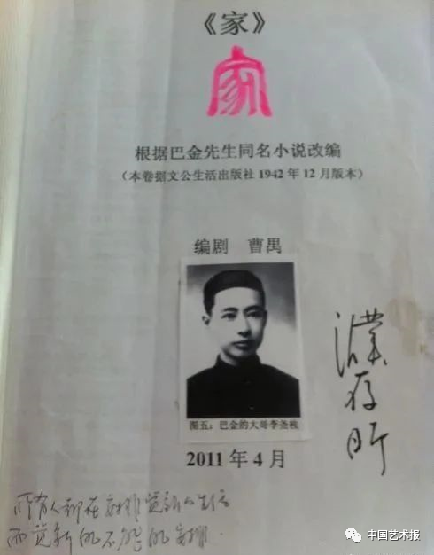 濮存昕在话剧《家》中饰演觉新,这是他在剧本扉页写下的表演心得
