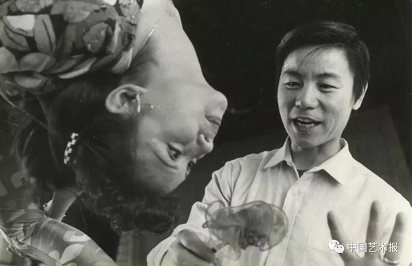 还有一次,1984年《蹬板凳》晋京参加国庆35周年文艺演出活动,当时的舞台很矮,离嘉宾围坐的主桌又特别近,板凳万一倒了,就会直接砸到主桌上。我在板凳上表演倒叼花的时候,保险绳已经贴在我脸上了,我必须弓起身子亮相,再把花插到头上。应该说,很多时候表演环境很艰苦,但对我们来说也是很好的锻炼。