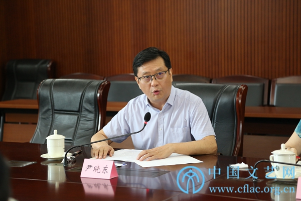 8月25日,中国剧协“加强戏剧界行风建设 弘扬德艺双馨精神”座谈会在京召开。图为中国剧协副主席、中国戏曲学院院长尹晓东发言。