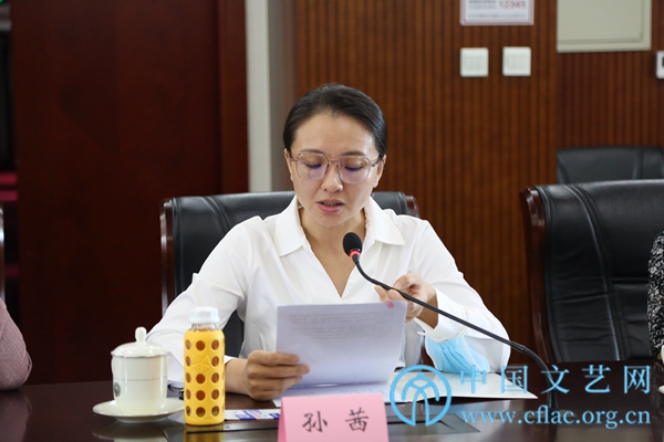 8月25日,中国剧协“加强戏剧界行风建设 弘扬德艺双馨精神”座谈会在京召开。图为北京人民艺术剧院一级演员孙茜发言。