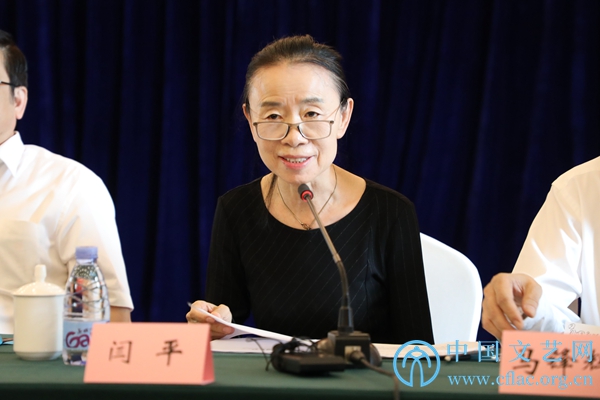 8月25日,“修身守正 立心铸魂——中国美协美术工作者职业道德和行风建设座谈会”在京召开。图为中国美协民族美术艺委会主任、中央民族大学教育基金会理事长殷会利发言。