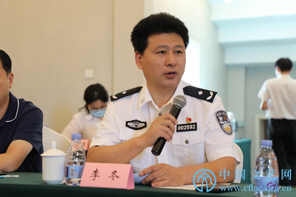 8月25日,“修身守正 立心铸魂——中国美协美术工作者职业道德和行风建设座谈会”在京召开。图为中国美协民族美术艺委会委员、全国公安文联副主席李冬发言。