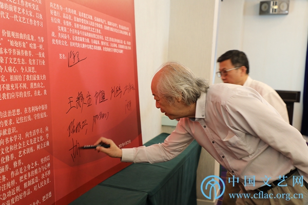 8月25日,“修身守正 立心铸魂——中国美协美术工作者职业道德和行风建设座谈会”在京召开。图为与会代表在倡议书上签名。