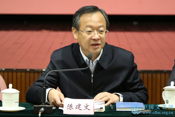 10月30日,中国美术家协会美术工作者职业道德建设委员会成立大会暨第一次全体会议在京召开。图为中国文联党组成员、书记处书记陈建文出席会议并讲话。中国文艺网 刘青摄