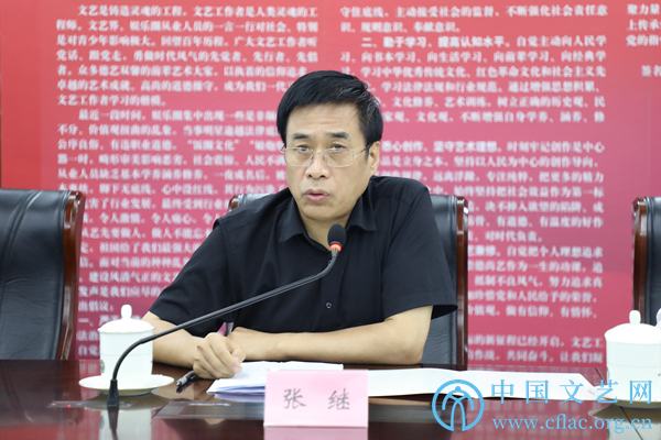 8月26日,中国书协在北京召开“修身守正 立心铸魂——中国书协职业道德和行风建设工作座谈会”。图为中国书协副主席张继发言。中国文艺网 李想 摄