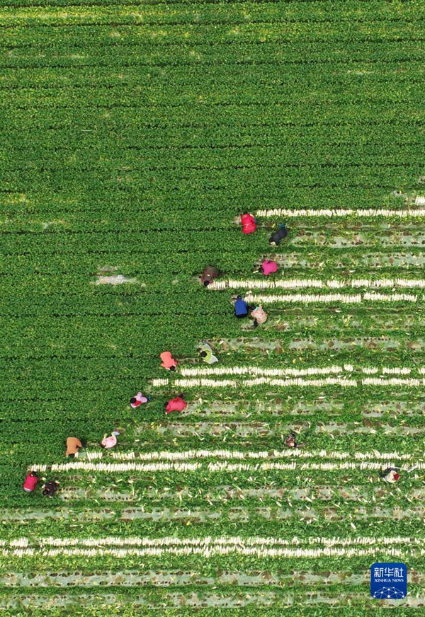 2月28日,在四川省南充市蓬安县锦屏镇中坝社区,村民在地里劳作(无人机照片)。新华社发(刘永红 摄)
