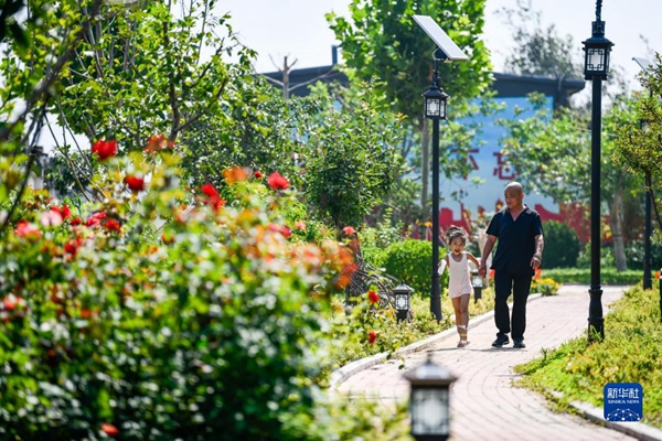 村民在河北省唐山市丰南区胥各庄镇蛮子坨村内休闲(2021年8月27日摄)。新华社记者 牟宇 摄
