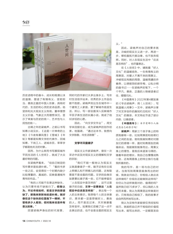 《中国青年》2022年第4期发表的《专访梁晓声:用〈人世间〉,写就温暖人间事》一文中,梁晓声分享了对文学创作的真知灼见和对“好人文化”的推崇,本文特此节选了部分内容,以飨读者。
