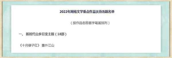2022年,我转型创作的山乡巨变主题小说《十月缨子红》入选了2022年网络文学重点作品扶持选题名单,租书屋的老马两口子听说后非常激动,说:“这小子挺厉害的!”我也很高兴,这么久了他们还记得我,他们也算是见证了我的发展,见证了网络文学的发展。