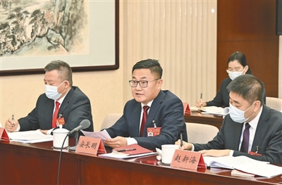 图为河北省塞罕坝机械林场党委书记安长明代表(左二)在发言。赵海江摄
