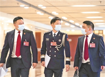 在湖南代表团驻地,代表们在会议结束后就党的二十大报告进行交流。唐俊 邓晶琎摄影报道