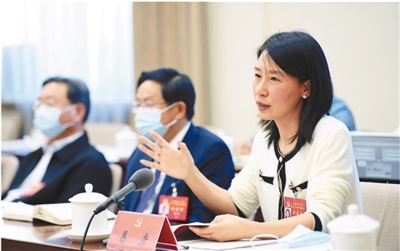 北京代表团举行分组会议,代表们讨论党的二十大报告。本报记者 贺勇摄