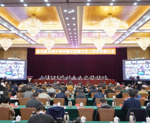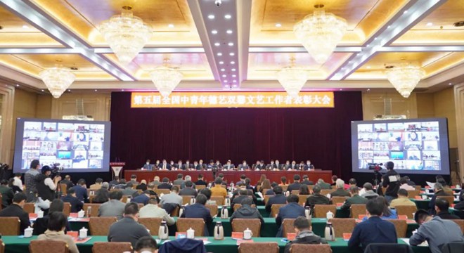在全党全国人民开启第二个百年奋斗目标新征程、喜迎党的二十大胜利召开之际,中宣部、人社部和中国文联联合召开第五届全国中青年德艺双馨文艺工作者表彰大会,授予44名同志“全国中青年德艺双馨文艺工作者”荣誉称号。这份崇高的荣誉,饱含着党和人民对新时代文艺事业的关心厚望、对广大文艺工作者的鼓励期待。为在文艺界大力弘扬德艺双馨精神,以蓬勃朝气和豪迈锐气,更加自觉主动担当起推动社会主义文艺繁荣发展、建设社会主义文化强国的神圣职责,出席表彰大会的全体代表特向全国文艺工作者发出倡议: