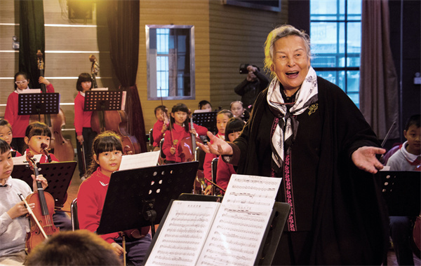 2014年11月26日,新中国第一位女指挥家郑小瑛在湖南省长沙市芙蓉区育才交响乐团指导教学。肖文 摄