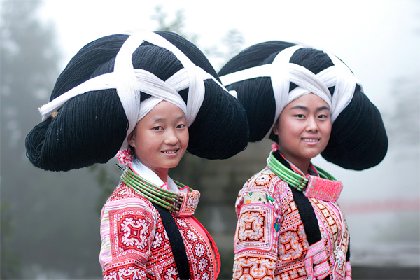 贵州长角苗族居住在贵州省西北部六枝特区和织金县交界地带的崇山峻岭中,巨大的头饰和漂亮的服饰是他们主要特征。据说头顶4公斤重的巨大发髻是用一支长角木梳和亡故祖先的头发, 再加上黑麻毛线盘成的。长角苗族文化传统已延续千年。黄碧茜 摄