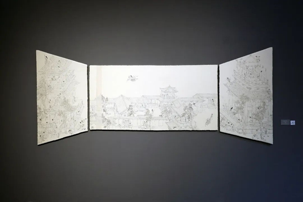 《七个夜晚》是彭薇与女性友人的“同梦”。建筑错落的位置与构造,提供了迥然不同的活动场所,交互式的创作灵感、画作的奇特切换和梦境的特殊张力,营造了视觉与心理上的双重女性空间。另外一件作品《器世间》让观众仿佛进入了彭薇的内心时空,得以体会到艺术家在画面上反复描摹千百年来女性生存处境。