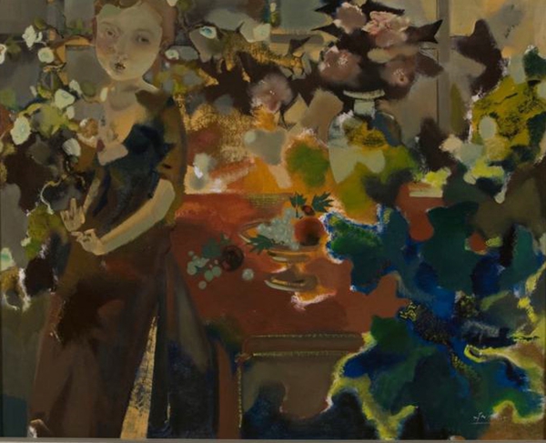 中国当代女性画家中夏俊娜的基础色调是最具有代表性之一,尽管她的作品主要以清纯女孩、鲜果、花卉为主,内容也多为浪漫、青春,但主观色彩却始终是冷色调,在光影与色彩的展现上很有些伦勃朗的味道。在冷峻的色调下,人物和植物以不同的形态穿梭在不同的空间中,具有明显的个人风格。她的作品如《春好》,基础色调大都以黑白灰的冷色为主,黑灰色为底色衬托着人物和静物的颜色主题与色调的惯性使得她的不同作品更像是一个世界中不同的事物,这种通过主观色彩的基调形成了自主的风格,这种基调的存在可以长时间持续影响观赏者。作品多半描述女性的生活和内心世界,画面虽然都是热闹的场景,可是她们的眼神却是那么的迷茫、忧郁。很深刻地表达了现代社会中女性的生活状态,既有优越感,又不乏茫然空虚和挣扎,而这些都是通过艺术家与生俱来对色彩的天赋而赋予的。