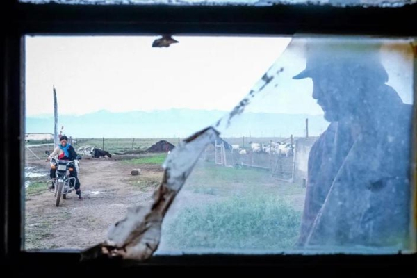 另一处超现实场景出现在爷爷离世后。去还种羊的江洋与父亲赶回家参加法事,抱着裹好的遗体乘皮卡前往寺院出殡。途中,疲惫的江洋与父亲微闭双眼搂在爷爷两边,镜头幻化出云蔚霞起的梦境:江洋在湖畔向前方唤着爷爷,镜头缓缓降至脚下的湖滩,清浅的水洼倒映出爷爷的身影,手持念珠慢慢地前行。身影消失处,镜头复归地平线,江洋气喘吁吁地追上来,环看四周寻不见人,只有不远处低头吃草的一匹白马。幻境中地平线的一上一下仿若阴阳相隔的两个世界,而白马与爷爷之间的关联“比兴”则在这里得到映现,白马与摩托的车的对比“比兴”也进一步强化。爷爷和白马象征着传统,观念上的或者是习俗,然而,他们逐一逝去,在现实或梦境里,隐含了一种趋势或表明一种态度。