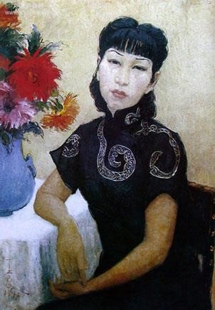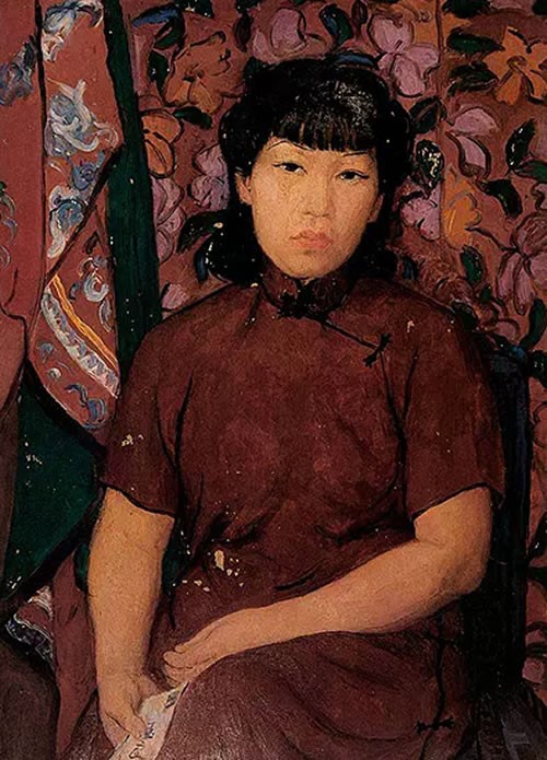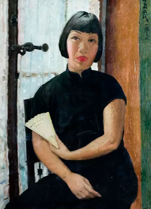 图三《执扇自画像》布面油画 1939年