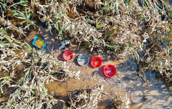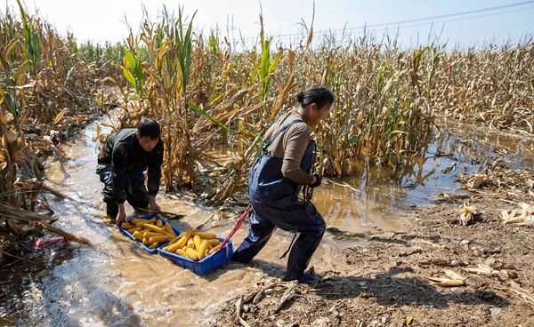 2021年汾河新绛县段抗洪救灾一线记录——2021年10月13日,返回家中的群众陆续开始抢收秋粮。运城市 金玉敏 摄