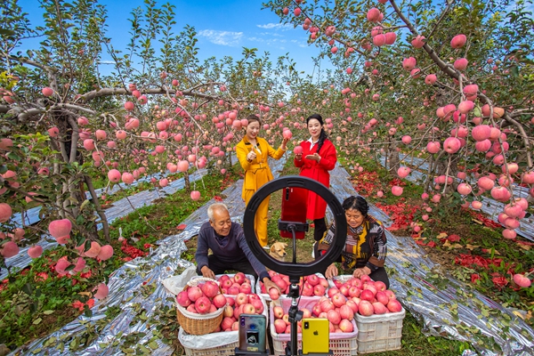 电商+直播扶贫助农到田间——2020年10月4日拍摄于平陆县圣人涧镇青岚村。平陆县电商营销为农民搭起脱贫致富的桥梁。运城市 杨建峰 摄