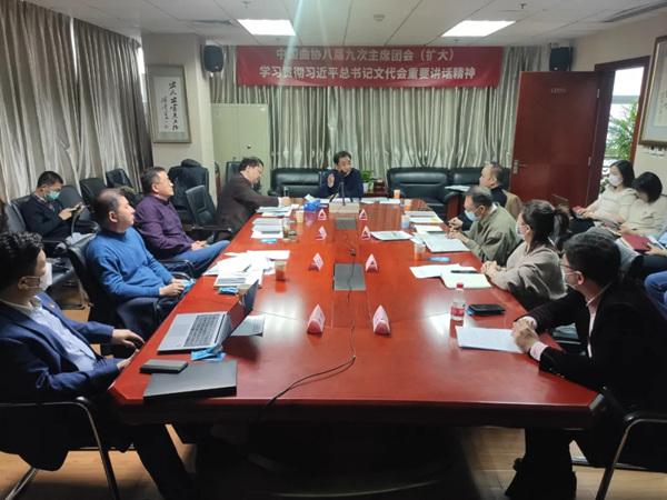 中国曲协第八届主席团第九次会议(扩大)于2021年12月20日在北京以线上线下结合的方式召开,中国曲协主席姜昆主持会议。中国曲协分党组书记、驻会副主席杨发航,副主席闫淑平、吴文科、张旭东、范军、种玉杰、翁仁康、盛小云、籍薇(按姓氏笔画排序)出席。中国曲协分党组副书记、秘书长曲华江,中国曲协分党组成员、副秘书长黄群,中国文联曲艺艺术中心主任项云,曲协机关各部门、《曲艺》杂志社负责同志及部分在京曲艺界代表李想、郭磊、崔骏列席会议。