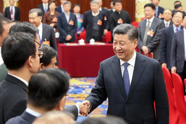 △2019年3月4日下午,中共中央总书记、国家主席、中央军主席习近平看望参加全国政协十三届二次会议的文化艺术界、社会科学界委员,并参加联组会,听取意见和建议。