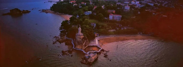 2013年8月,中国福建省厦门郑成功雕像,屹立在鼓浪屿东南端的覆鼎岩。