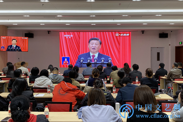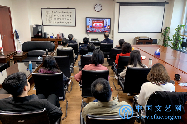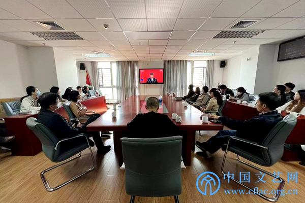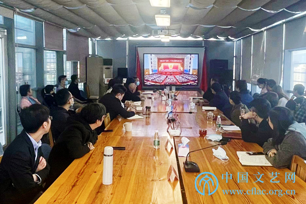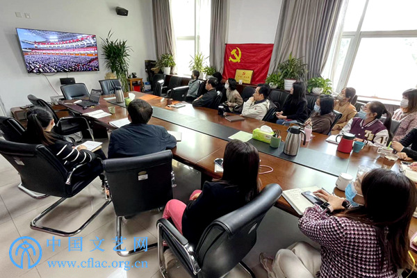 10月16日上午,中国共产党第二十次全国代表大会在北京隆重开幕,习近平总书记代表第十九届中央委员会向大会作报告。图为中国文联机关各部门组织全体党员和干部职工收听收看党的二十大开幕会直播盛况。 中国文艺网 高森 摄