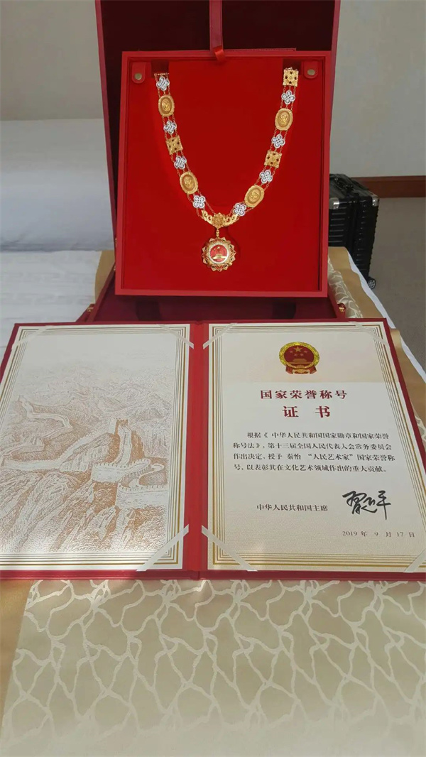 秦怡“人民艺术家”国家荣誉称号奖章及证书。