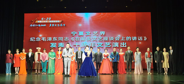 在毛泽东同志《在延安文艺座谈会上的讲话》发表80周年之际,宁夏回族自治区文联组织全区文艺界开展了“赓续红色血脉 勇攀文艺高峰——喜迎党的二十大暨纪念毛泽东同志《在延安文艺座谈会上的讲话》发表80周年”系列主题文艺活动,深入学习贯彻习近平总书记《在文艺工作座谈会上的讲话》和在中国文联十一大、中国作协十大开幕式上的重要讲话精神,推动新时代新征程全区文艺事业繁荣发展,为建设美丽新宁夏、共圆伟大中国梦贡献文艺力量,以优异成绩迎接党的二十大和自治区第十三次党代会胜利召开。