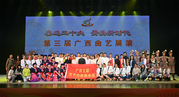 “喜迎二十大 赞美新时代”第三届广西曲艺展演启动仪式在邕州剧场举办,展演于5月26日至29日以“线上+线下”的形式举办,汇聚广西25个曲种40部优秀曲艺作品,共227位演员参演。
