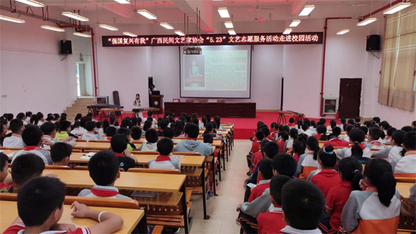 广西民间文艺家协会“5.23”文艺志愿服务活动走进贵港覃塘区实验小学,文艺志愿者黄丹兰为120多名师生作传统音乐古筝艺术辅导,还为该校捐赠了1.5万元的爱心古筝两台。
